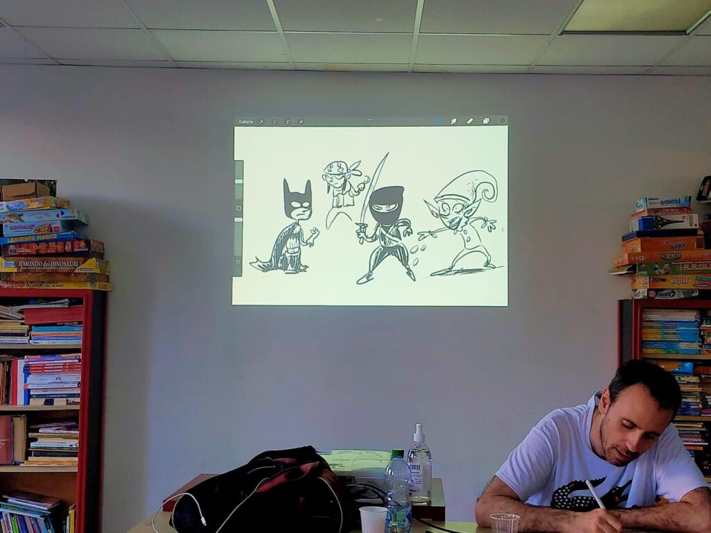 È stato compagno di festa Michele Rech in arte Zerocalcare (uno dei protagonisti italiani più rilevanti degli ultimi anni, è un fumettista e attivista noto per le sue vignette brutalmente realistiche che ritraggono la politica, la società nazionale e internazionale odierna e le questioni correlate) che ha realizzato dei live sketching sulla base dei suggerimenti dati dai bambini e dalle bambine presenti.